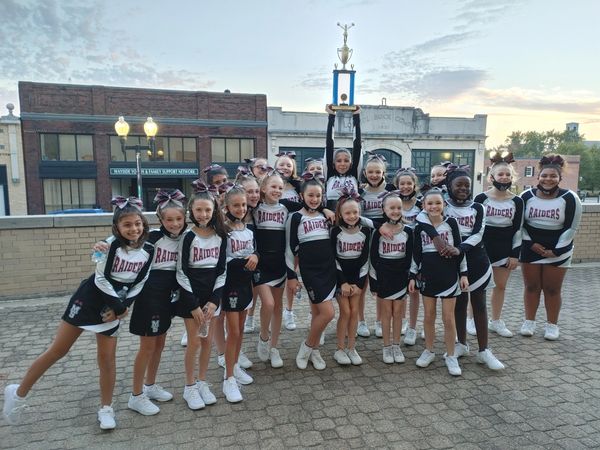 Raiders Cheer begins August 4th, 2025 and is an age based program. Athletes will condition, dance, tumble, stunt, chant, and learn all of the basics of cheer to prepare for both football game performances and to learn and compete with a competitive cheer routine. The Fall season will run until the first weekend in December and meets for practices 1-2 times per week once school begins and attends football games weekly. The cost is $225 for the Fall Cheer season for all cheer athletes. You will be required to purchase white cheerleading shoes in the brand of your preference and a season bow.